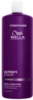 Wella Professionals Ultimate Color Conditioner er en pleiende conditioner for farget hår som bevarer fargens glans og styrke. Den glatter ut hårstrået for en myk og silkeaktig følelse, samtidig som den styrker håret og reduserer hårbrudd med opptil 86 %*. Inneholder glysin, metal purifier og Pro-Vitamin B5 som beskytter mot frie radikaler, tilfører fuktighet og hjelper med å bevare pigmentene for en mer holdbar farge.