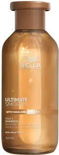 Wella Professionals Ultimate Smooth Shampoo er utviklet med Metal Purifier-teknologi for å rense håret for metaller. Når du bruker Miracle Oil Serum, blir håret næret på 30 sekunder, med en glatthet som varer i opptil 3 dager*. Med Squalane og Omega-9 for å gi næring til håret på innsiden og gjenoppbygge håret på utsiden – dermatologisk testet og egnet for farget hår. Den inneholder en blanding av noter fra jasmin, vanilje, bergamott, fersken og sandeltre – nyt duften av en blomsterbukett ved hvert bruk. Påfør Ultimate Smooth Shampoo i vått hår og skum opp. Skyll og gjenta om nødvendig. Denne sjampoen renser skånsomt og effektivt med et luksuriøst skum. For best resultat, bruk denne detox-sjampoen sammen med Ultimate Smooth Conditioner, Hair Mask og Miracle Oil Serum. Denne hårbehandlingen er ideell for egenpleie eller som en skjønnhetsgave.